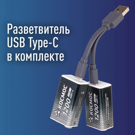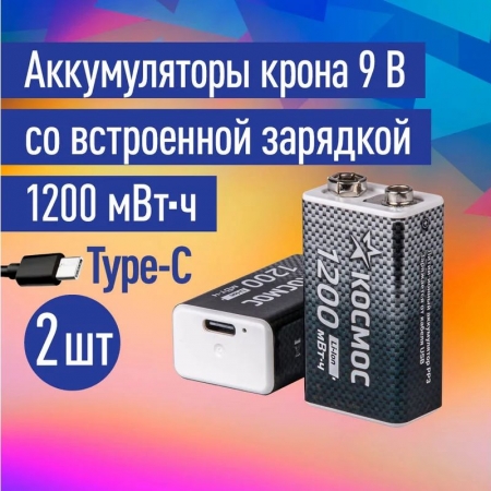 Литий-ионный аккумулятор 9V (крона) с зарядкой от USB. Аккумуляторы рекомендованы для длительного и интенсивного использования. Они накапливают заряд быстрее и больше обычных аккумуляторов, отличаются низким саморазрядом, в них отсутствует «эффект памяти». Аккумуляторы имеют защиту от перезаряда, разряда и перегрузок. Ресурс работы более 1000 циклов перезарядки. В комплект входят 2 аккумулятора емкостью 1200 мВт*ч и USB-кабель для зарядки.