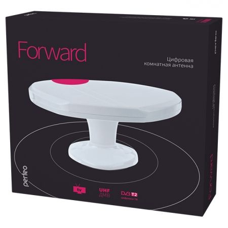 Цифровая телевизионная комнатная антенна Perfeo Forward предназначена для приема телевизионных программ в дециметровом диапазоне частот 470..790 МГц, а также приема аналогового и цифрового телевидения формата DVB-T и DVB-T2. Устройство оснащено современным малошумящим усилителем и обеспечивает качественное изображение в зоне устойчивого приема сигнала. Питание осуществляется от ТВ-приставки (ресивера), поддерживающей функцию питания антенны (режим питания активируется в меню приставки). Модель имеет небольшие размеры и устойчивое основание для установки на телевизоре или другой горизонтальной поверхности.