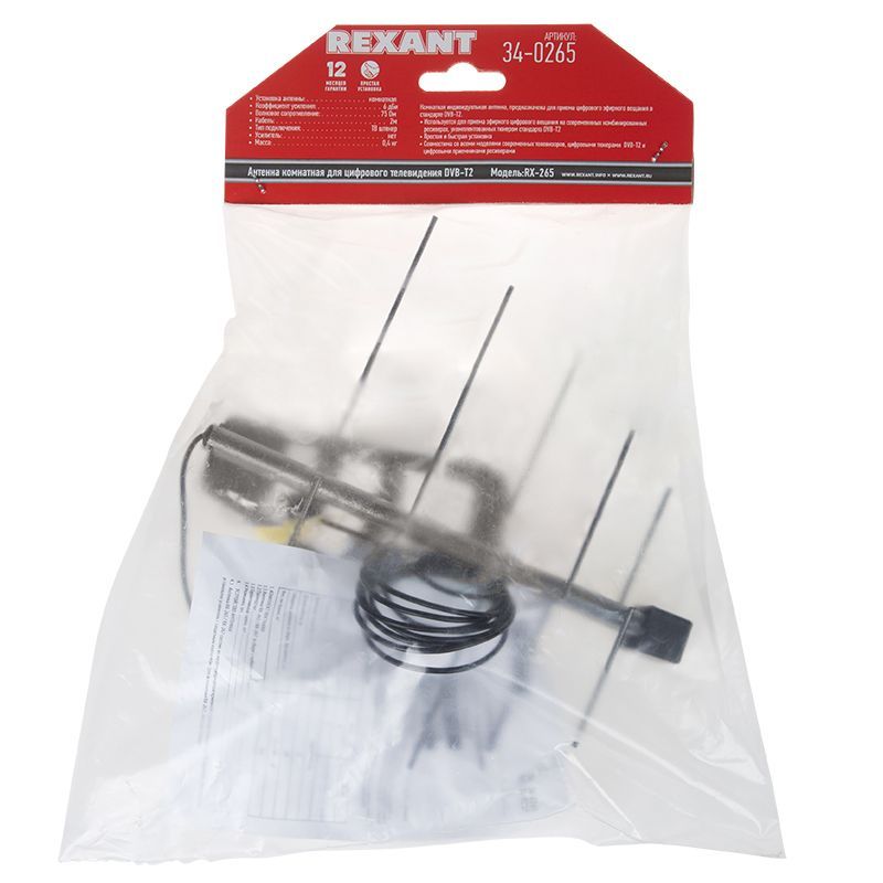 Комнатная пассивная антенна Rexant RX-265 для приема цифрового телевидения DVB-T2. Антенна совместима со всеми моделями современных телевизоров, цифровыми приставками DVB-T2 и ресиверами. Простая и быстрая установка обеспечивает удобство использования антенны.
