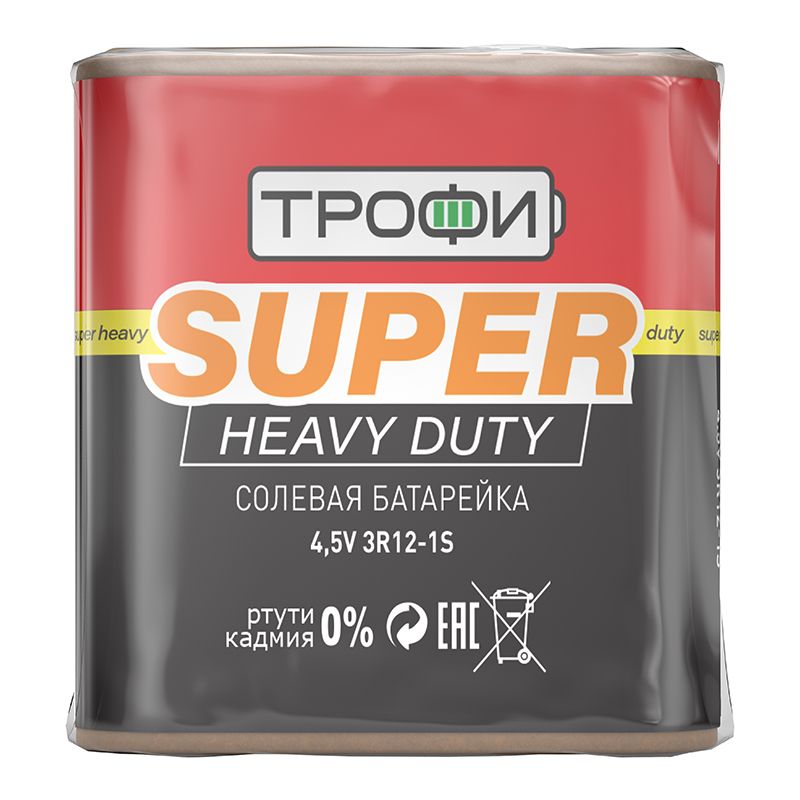 Трофи Super Heavy Duty 3R12 - высококачественная солевая батарейка по доступной цене. Оптимально подходит для приборов ежедневного использования. Срок хранения до 3 лет. Технические характеристики