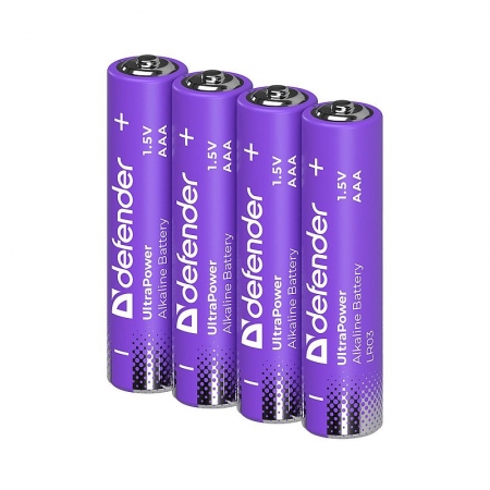 Производитель: Defender Наименование: Элемент питания Размер: AАA (LR03) Химический состав: Щелочный Напряжение: 1.5 В Упаковка: Блистер Количество в упаковке: 4 шт