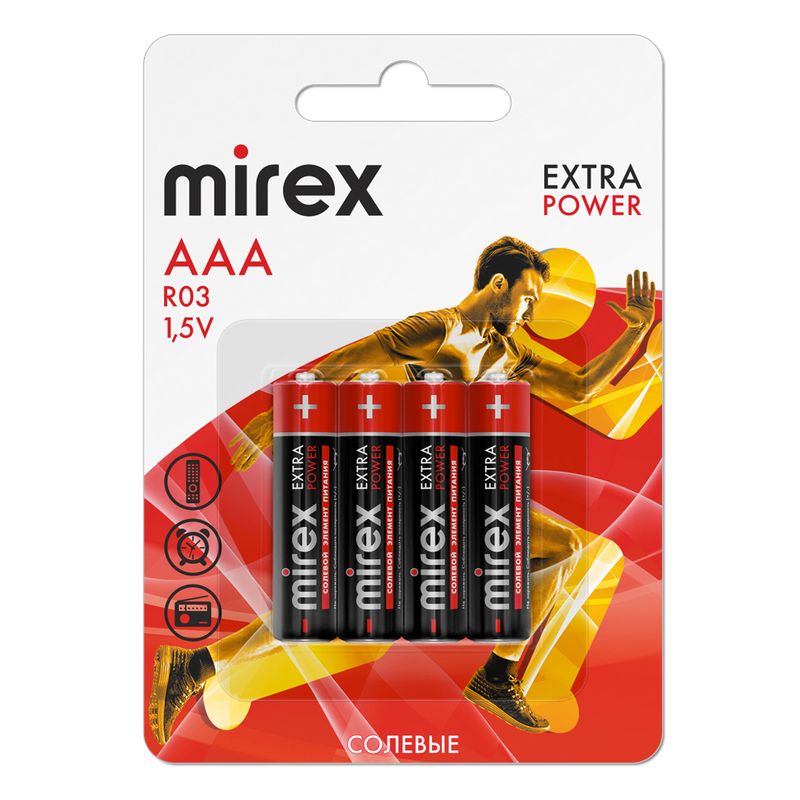 Батарейки ААА / R03 MIREX EXTRA POWER - компактный источник питания мирового стандарта, способный обеспечить бесперебойную работу различным, прежде всего портативным, устройствам с низким и средним уровнем потребления энергии: пультам ДУ, радиоприёмникам, таймерам, калькуляторам, настенным часам. Батарейки устойчивы к протеканию электролита, благодаря корпусу, который создан с применением специальной технологии «AntileaX». Не содержат ртути и кадмия. Цена указана за 4 батарейки.
