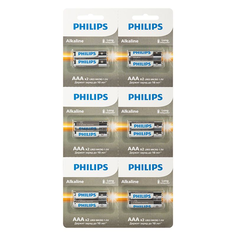 Алкалиновые батарейки AAA Philips Alkaline LR03 для устройств со средним и высоким энергопотреблением. Батареи Philips