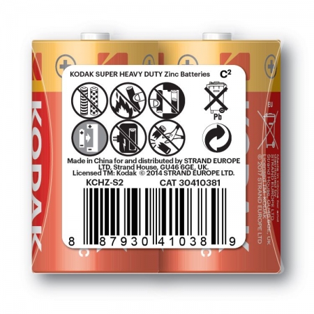 Производитель: Kodak Наименование: Элемент питания Размер: С (R14) Химический состав: Солевой Напряжение: 1.5 В Рабочая температура: 0 ..+45 C Упаковка: Термопленка Количество: 2 шт Размеры: 49.5 x 25.6 мм (батарейка) Вес: 47 г (батарейка)