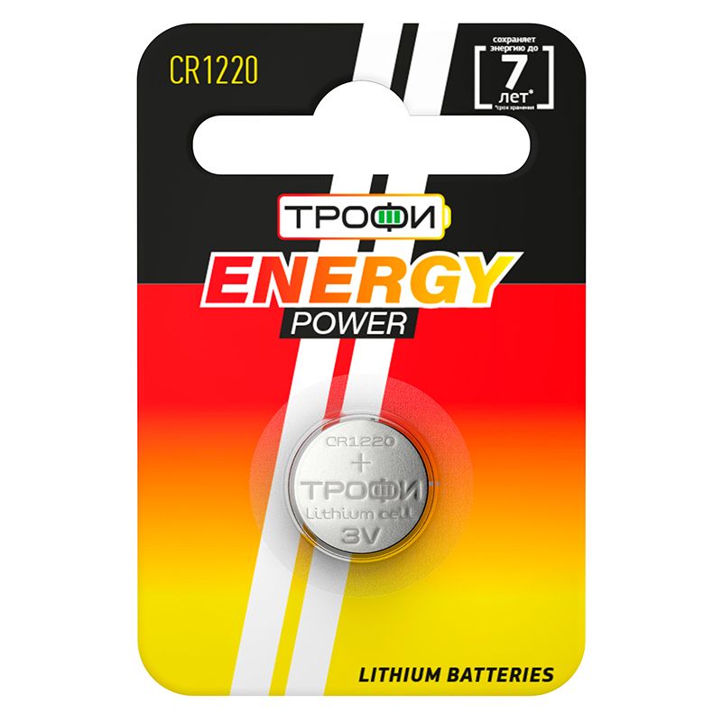 Литиевая батарейка CR1220 Трофи используется в часах, калькуляторах,