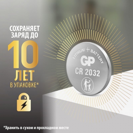 Элемент питания CR2032 GP Lithium 3 В используется в светодиодных фонарях,