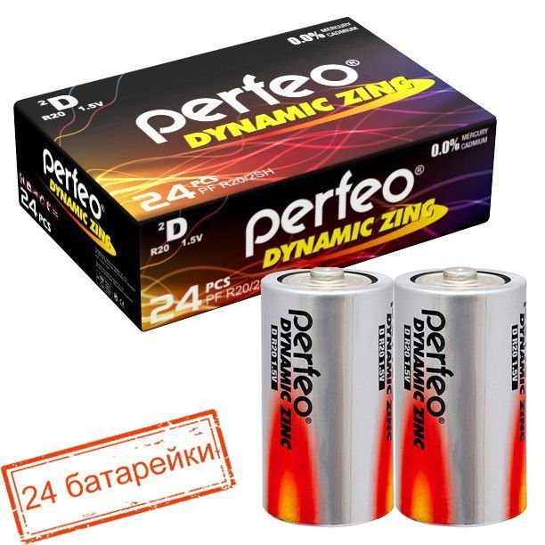 Главная / Электропитание / Батарейки / Батарейки D / Батарейка D Perfeo Dynamic Zinc R20/2SH, солевая, термопленка, упаковка 24 шт