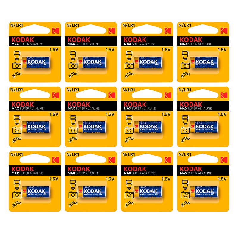 Алкалиновые батарейки размера N Kodak Max LR1 используются в цифровых фотоаппаратах, фотовспышках, фонариках, брелках автосигнализаций, бесконтактных ключах, беспроводных звонках, игрушках и в других устройствах. Цена указана за 12 батареек (12 блистеров).