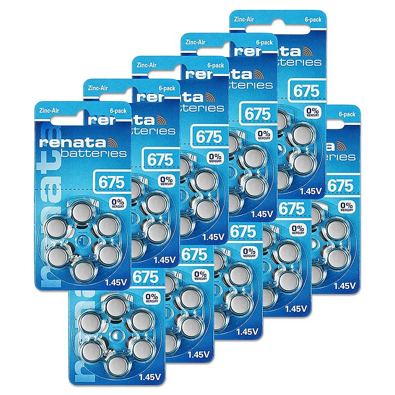 Батарейки для слуховых аппаратов ZA675 Renata. Цена указана за 60 батареек (10 блистеров по 6 батареек).