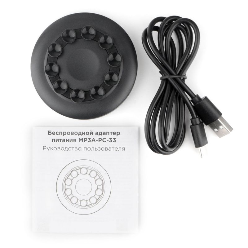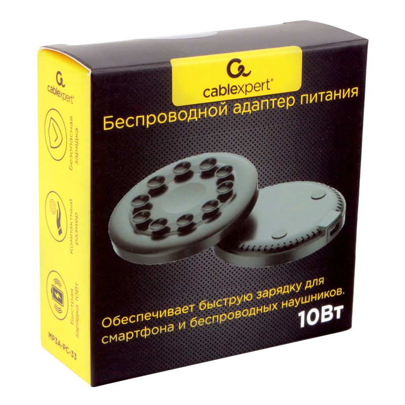 Cablexpert MP3A-PC-33 - беспроводное зарядное устройство для зарядки смартфонов, наушников и других устройств с питанием через беспроводную зарядку. Оно позволяет зарядить смартфон без использования кабеля, достаточно положить аппарат на зарядную панель. Устройство обладает максимальной мощностью 10.5 Вт. Подключается к адаптеру питания с разъемом USB A.