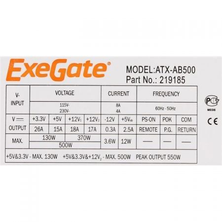 Блок питания ATX ExeGate AB500 обладает мощностью 500 Вт. Он оснащен 80