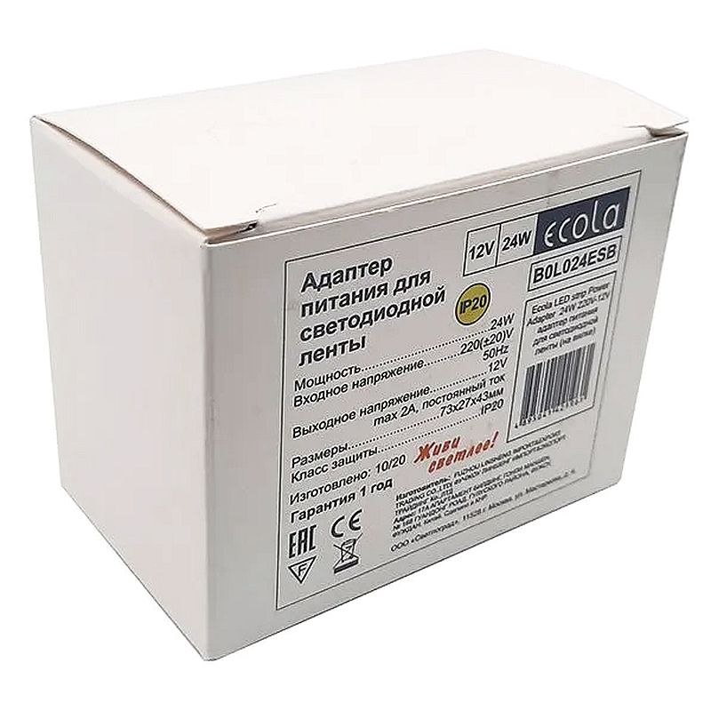 Блок питания (вилка с проводом) для LED ленты 24 Вт, 220V-12V, штекер 5.5x2.5 мм, Ecola (B0L024ESB)