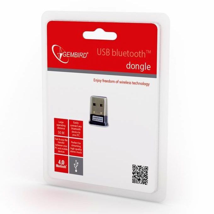 Миниатюрный адаптер Gembird BTD-MINI5 используется для подключения компьютера, не оснащенного Bluetooth-интерфейсом, к отдельному устройству (мобильный телефон, КПК, ВТ-гарнитура и т.д.) в режиме беспроводной связи. Поддерживает спецификацию Bluetooth v.4.0 и обеспечивает передачу данных на скорости до 24 Мбит/c. Подходит для прослушивания стерео-музыки. Благодаря миниатюрным размерам адаптер можно не вынимать из USB-порта ПК, что делает его удобным для использования с ноутбуком.