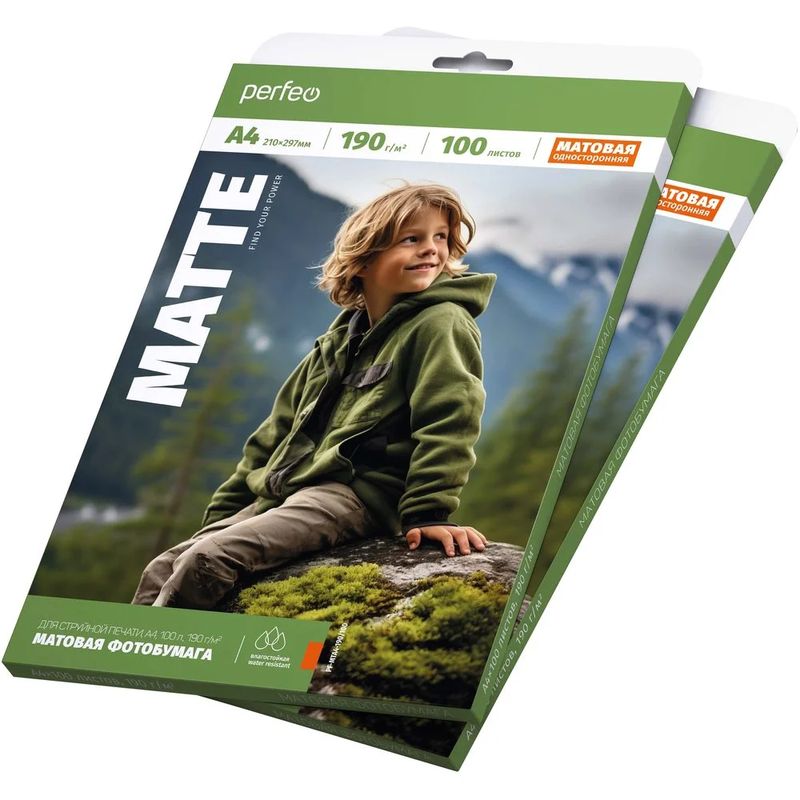 Односторонняя матовая водостойкая фотобумага Perfeo для струйной печати, A4, 190 г/м2, 100 листов.