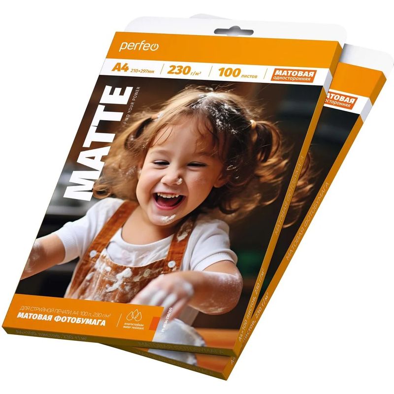 Односторонняя матовая водостойкая фотобумага Perfeo для струйной печати, A4, 230 г/м2, 100 листов.