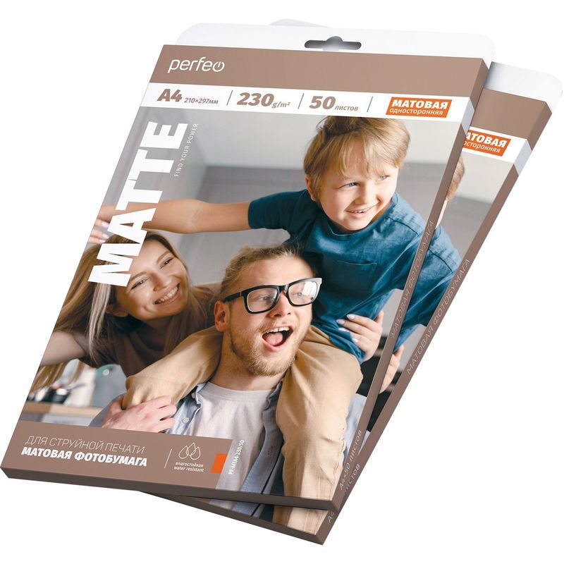 Односторонняя матовая водостойкая фотобумага Perfeo для струйной печати, A4, 230 г/м2, 50 листов.