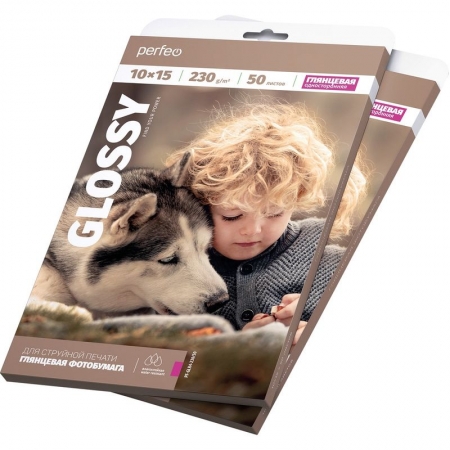Бумага A6 Perfeo глянцевая 230 г/м2, 10x15 см, 50 листов (PF-GLR4-230/50) (G02)
