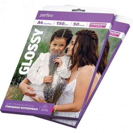 Бумага A4 Perfeo глянцевая 150 г/м2, 50 листов (PF-GLA4-150/50) (G07)
