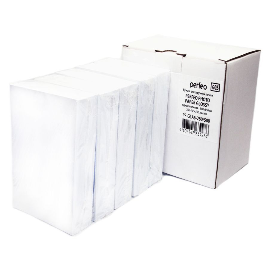 Односторонняя глянцевая водостойкая фотобумага Perfeo для струйной печати, A6, 260 г/м2, 500 листов.