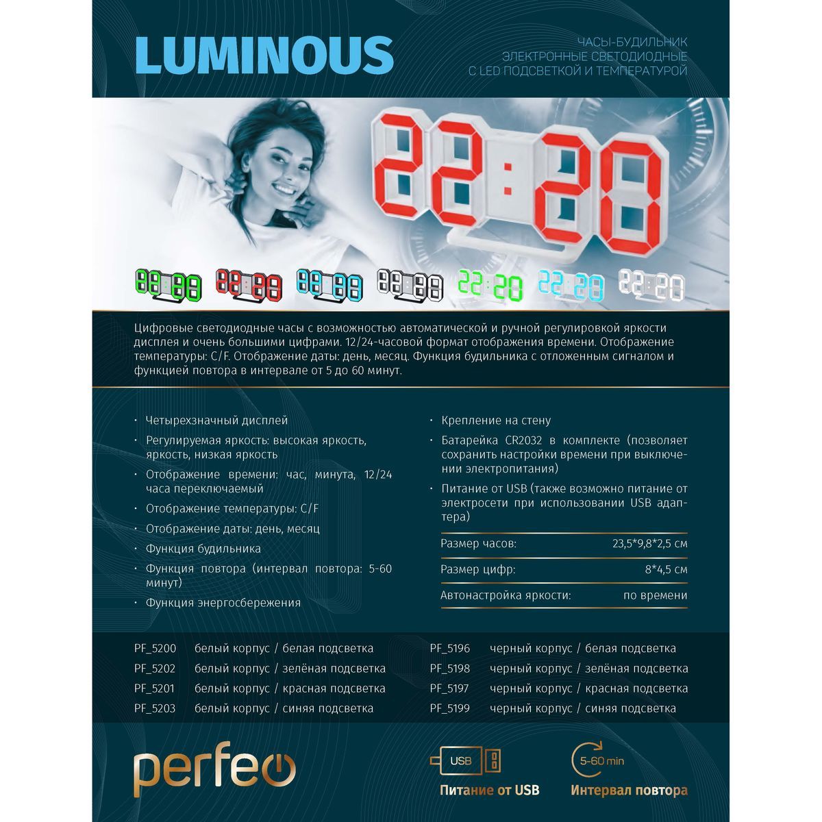 Perfeo Luminous - электронные часы c будильником и большим цифровым