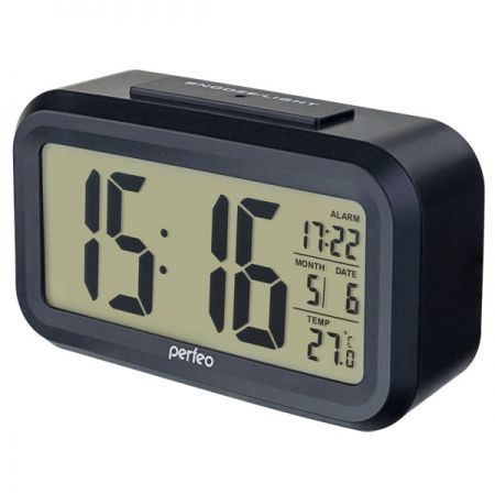 Часы будильник Perfeo PF-S2166 SNUZ", температура, дата, черные (PF_A4849)"
