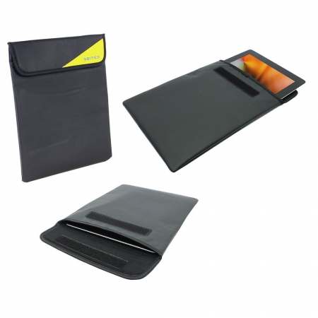Защитный чехол 5bites подходит для большинства планшетов с диагональю 9.7". Модель изготовлена из водостойкого материала PVC тарпаулин, представляющего собой полотно из плетеной полиэтиленовой ткани. Двухстороннее ламинирование светостабилизированной пленкой обеспечивает чехлу гидроизолирующие свойства. Мягкая внутренняя подкладка предотвращает образование царапин на корпусе устройства. Предусмотренный клапан, застегивающийся на липучки, препятствует выпадению планшета из чехла во время транспортировки.