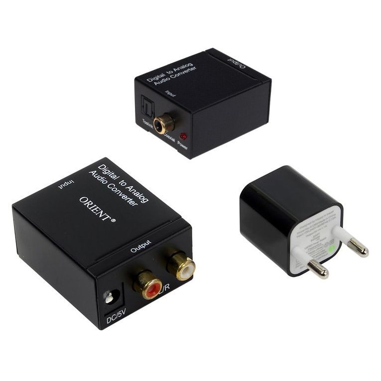 Цифро-аналоговый конвертор аудио-сигнала Orient DAC0202N позволяет подключить активные стерео колонки и сабвуферы, стереоусилители и музыкальные центры, не имеющие цифрового аудиовхода, к современным LCD и плазменным телевизорам, медиаплеерам, ресиверам, игровым приставкам и другим устройствам с цифровым оптическим или коаксиальным выходом звука. Конвертер преобразовывает цифровой аудиосигнал в аналоговый стерео (L/R), автоматически определяет и декодирует различные форматы цифрового сигнала. Металлический корпус конвертера обеспечивает защиту от электромагнитных помех. В комплект входит адаптер питания с USB-портом и кабель питания. Адаптер питания имеет защиту от короткого замыкания и перегрузки, и может использоваться для зарядки портативных устройств. Конвертер упакован в прочный пластиковый контейнер с защелкой.