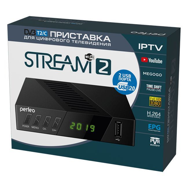 Цифровой ресивер Perfeo Stream-2 позволяет принимать телевизионные и радиовещательные каналы цифрового эфирного телевидения в стандартах DVB-T/T2 и DVB-C. С этим ресивером вы сможете уже сегодня наслаждаться высоким качеством изображения и звука цифрового эфирного телевидения, которое в отличии от кабельного и спутникового ТВ, доступно без всякой абонентской платы. Для приёма цифрового сигнала достаточно самой обычной и простой TV антенны дециметрового (ДМВ) диапазона. Цифровой DVB-T2 ресивер Perfeo можно подключить даже к «старому» аналоговому телевизору и это значительно улучшит качество изображения телеканалов - как в городе, так и за городом (при достаточном и устойчивом уровне сигнала). Встроенный HD-медиаплеер поддерживает воспроизведение различных видеоформатов с USB-накопителей и внешних жестких дисков емкостью до 1 Тб. Также в модели реализованы функции отложенного просмотра TimeShift, записи телепрограмм PVR и отображения интерактивной программы передач EPG. Для более удобного управления на приставке имеется кнопочная панель, цифровой дисплей и два USB порта. Цифровой ресивер может подключаться к телевизору через композитный RCA разъем или интерфейс для передачи сигнала высокой четкости HDMI. В комплект поставки входят пульт ДУ и аудио-видео кабель для подключения к телевизору.
