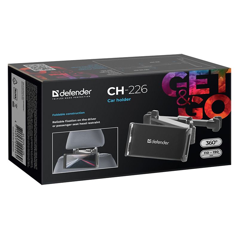 Автомобильный держатель Defender CH-226 подходит для планшета, смартфона, электронной книги и других устройств. Он надежно фиксируется на подголовник водительского/пассажирского сидения и позволяет полноценно пользоваться всеми функциями гаджета. Держатель поворачивается на 360° и фиксируется в любой позиции. Возможность регулировки положения устройства по горизонтали позволяет приблизить к себе держатель с мобильным устройством для управления им во время игры или расположения устройства ближе к центру автомобиля для комфортного просмотра видео всех пассажиров, находящихся на заднем сиденье. Мягкие боковые зажимы не повреждают технику и обеспечивают удобный доступ к разъемам. Специальная конструкция держателя обеспечивает легкую установку или снятие без применения дополнительных инструментов.