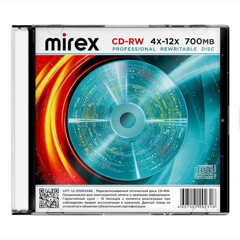 Диск CD-RW Mirex 700Mb 4x-12x, Slim Case (UL121002A8S)
