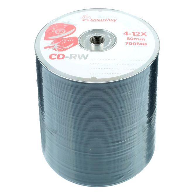 Оптический перезаписываемый диск CD-RW Smartbuy 700Мб 4x-12x. Упаковка термопленка. Цена указана за 100 дисков.