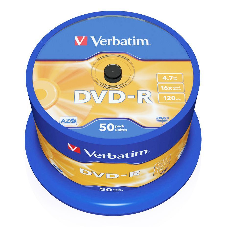 Оптический записываемый диск DVD-R Verbatim 4,7 Гб 16x, на шпинделе, в упаковке 50 шт.