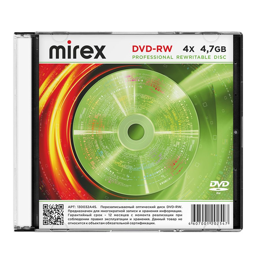 Оптический диск DVD-RW Mirex 4.7Гб 4х с возможностью многократной перезаписи. Совместим со всеми распространёнными DVD-ROM приводами и DVD- устройствами записи и проигрывания, имеющими поддержку DVD-RW. Способен максимально долго сохранять информацию при соблюдении правил эксплуатации. Упаковка Slim Case.