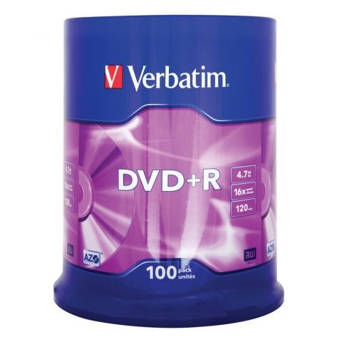 Диск DVD+R Verbatim 4,7 Gb 16x, Cake Box, 100шт (43551)