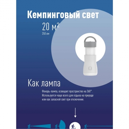 Космос KOCAc6017LED - складной фонарь-траснформер 3 в 1. В режиме кемпингового фонаря регулируется яркость, постепенно выдвигая корпус. Светит вперёд, используя режим фонарика, а мягкий свет кольцевого светильника пригодится при подвешивании над столом или как фонарик ближнего света. Питается от встроенного аккумулятора Li-ion ёмкостью 1200 мАч. Время автономной работы до 4 ч. Заряжается от любого USB-адаптера питания.