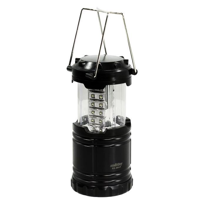 Кемпинговый фонарь SmartBuy SBF-30-F идеально подойдет туристам, рыболовам и охотникам. Устройство оснащено 30 SMD светодиодами и удобной складной ручкой. В качестве источника питания используются 3 батарейки АА, позволяющие автономно работать фонарю до 6 часов. Прочный корпус обеспечит надежную защиту фонаря от повреждений, а складная конструкция удобное хранение и транспортировку.