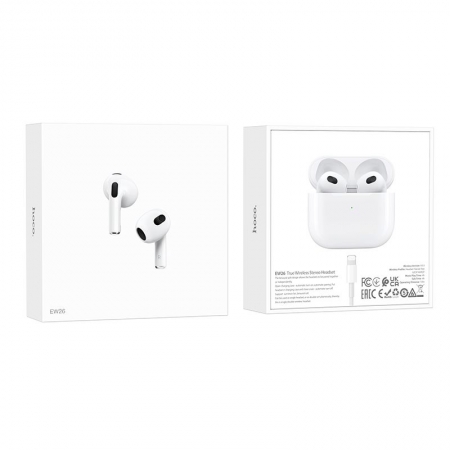 Hoco EW26 - беспроводная TWS-гарнитура. Наушники обладают эргономичной формой, компактными размерами и имеют легкий вес. Благодаря сенсорному управлению можно легко переключать треки, регулировать громкость или принимать звонки, не используя смартфон. Стабильное соединение с Bluetooth 5.3 позволит быстро подключаются к разным устройствам, обеспечивая надежную связь и высокое качество передачи данных. Время работы гарнитуры до 4 ч в режиме разговора/прослушивания музыки и в режиме ожидания до 150 ч. Удобный зарядный кейс емкостью 300 мАч позволит зарядить наушники несколько раз и защитит их при транспортировке. Технические характеристики