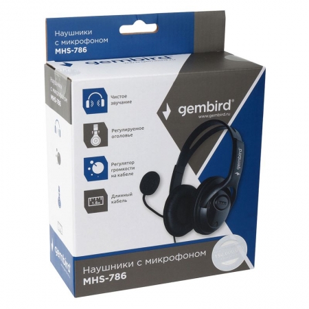 Gembird MHS-786 - полноразмерная стереогарнитура для компьютера. С ее помощью вы можете не только слушать музыку или смотреть фильмы, но также общаться с друзьями в режиме онлайн в голосовых чатах и во время игр. Модель оснащена качественными 40 мм динамиками, обеспечивающие чистое звучание в широком диапазоне частот. Поворотный микрофон на гибкой ножке позволяет оптимально настроить передачу звука во время разговора. Регулируемое оголовье и мягкие амбушюры, плотно прилегающие к ушам, обеспечивают комфортную посадку наушников. Регулятор громкости находится на кабеле и позволяет одним движением управлять звуком. Тканевая оплетка предохраняет кабель от повреждений и продлевает срок эксплуатации гарнитуры.
