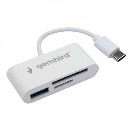 Карт-ридер внешний USB Gembird FD2-MSD-2, SD/microSD, OTG, кабель Type C, белый