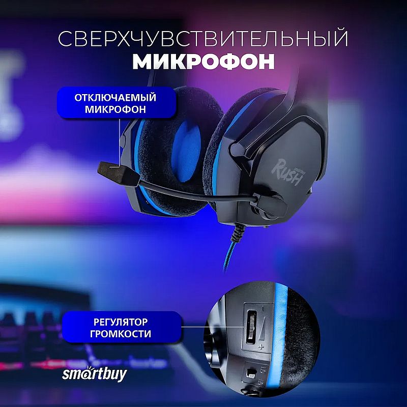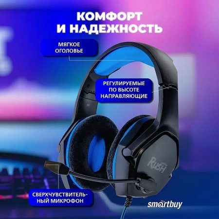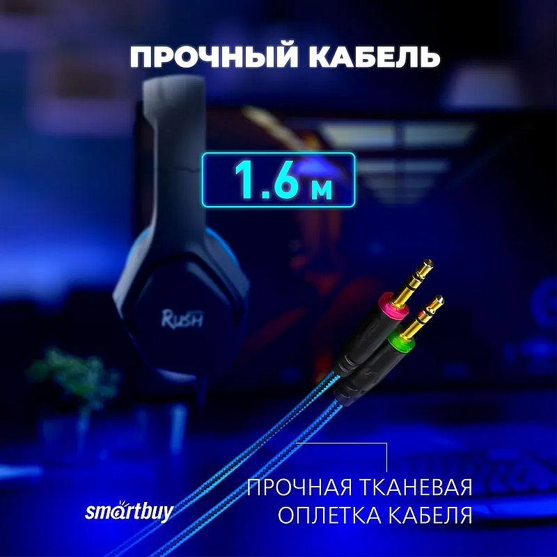 Smartbuy Rush ASPID - полноразмерные игровые наушники с микрофоном. Они оснащены удобными мягкими велюровыми амбушюрами, в которых поддерживается хорошая шумоизоляция и не возникает дискомфорт даже при длительном использовании. Динамики наушников с отличным качеством звука: большое звуковое поле, высокое разрешение. Оголовье регулируется и позволяет настроить комфортную посадку под индивидуальные особенности головы. Современный дизайн делают их привлекательным аксессуаром для любого геймера или музыкального фаната.