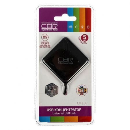 CBR CH 132 - 4-х портовый USB-разветвитель с питанием от USB-порта. Предназначен для подключения к компьютеру клавиатуры, мыши, USB флэш памяти, фотоаппарата, смартфона, планшета и пр. Поддержка интерфейса USB 2.0 позволяет передавать данные на скорости до 480 Мбит/сек. Благодаря тонкому дизайну и укороченному кабелю разветвитель будет удобен при работе с ноутбуком.