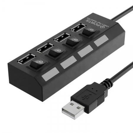 HUB 4-port Perfeo PF-H030, USB 2.0, выключатели, разъем для доп. питания, черный (PF_C3220)