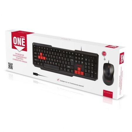SmartBuy ONE SBC-230346 - игровой мультимедийный комплект, состоящий из проводной клавиатуры и оптической мыши. Мультимедийная клавиатура имеет полноразмерную раскладку со 104 клавишами. Основные игровые клавиши выделены красным цветом. Для быстрого доступа к функциям медиаплеера и интернет приложениям в ней имеется 19 горячих клавиш, которые активируются кнопкой Fn. Регулируемый угол наклона клавиатуры и небольшая подставка под запястья способствуют естественному положению рук. Мышь выполнена в эргономичном дизайне и оснащена чувствительным сенсором с разрешением 1200 dpi, который обеспечивает точное позиционирование курсора и позволяет работать практически на любой поверхности. Оба устройства подключаются к компьютеру через USB и не требуют установки драйверов. Технические характеристики