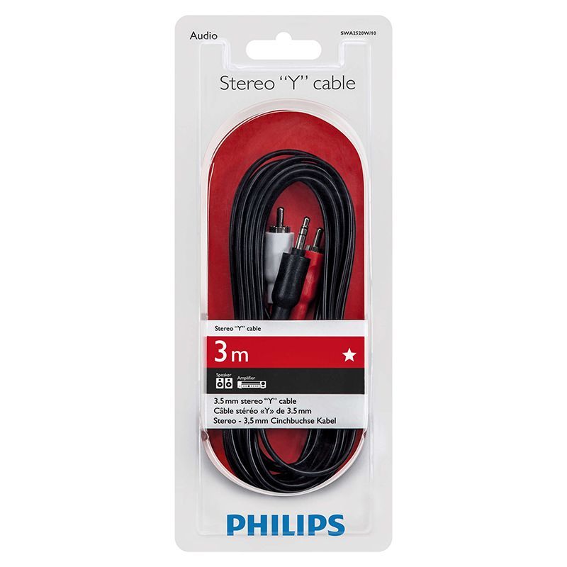 Аудио кабель Philips SWA2520W/10 предназначен для передачи аналогового аудиосигнала и широко применяется в эксплуатации домашней и профессиональной аудиоаппаратуры (электронные музыкальные инструменты, плееры, усилители звука, телевизоры, акустические системы, мобильные телефоны и т.п.) С одной стороны шнура располагается 3.5 мм стерео штекер, а с другой 2 штекера разъема RCA (традиционный стандарт для аналоговой видео и аудиотехники). Проводники выполнены из сверхчистой меди, что обеспечивает надежную передачу сигнала, а экранирование неизолированной медью защищает его от помех. Технические характеристики