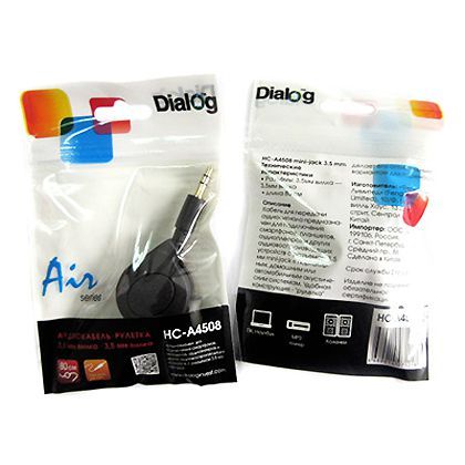 Производитель: Dialog Наименование: Аудио кабель Разъемы: 3.5 stereo plug - 3.5 stereo plug Длина кабеля: 80 см (регулируется) Цвет: Черный