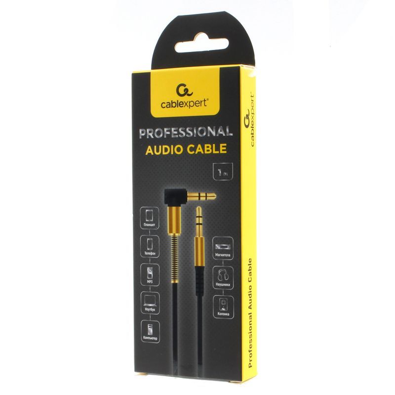 AUX кабель Cablexpert используетися для подключения аудиоустройств, оснащенных 3.5 мм разъемом. Один из штекеров кабеля имеет угловую форму и металлическую пружину, препятствующие заламыванию кабеля. Позолоченные контакты обеспечивают надежное соединение и передачу сигнала без помех.