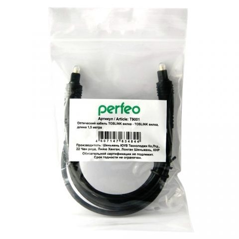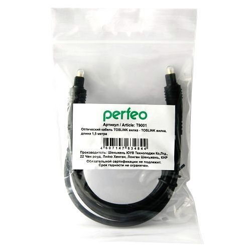 Кабель аудио оптический TOSLINK M-M, 1.5 м, Perfeo (T9001)