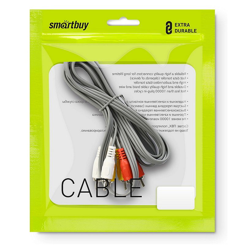 Производитель: SmartBuy Наименование: Аудио-видео кабель Разъемы: 3 RCA plug - 3 RCA plug Длина кабеля: 5 м Цвет: Серый