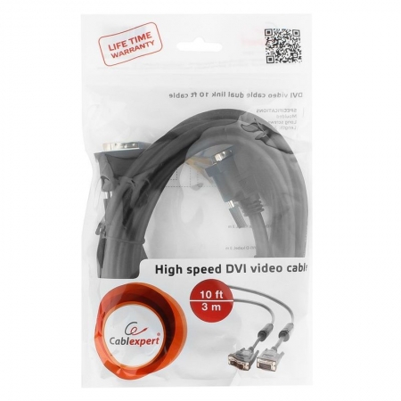 Производитель: Cablexpert Наименование: DVI-кабель Формат: Dual link Тип сигнала: Цифровой Разъемы: DVI-DVI (24+1pin) Разрешение: до 2560 x 1600 Особенности: Двойное экранирование, ферритовые фильтры Материал проводников: Бескислородная медь Длина кабеля: 3 м Цвет: Черный Вес: 370 г