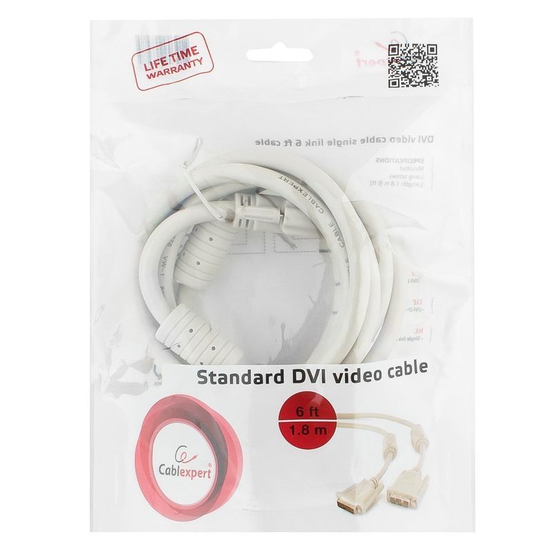 Кабель Cablexpert предназначен для соединения видеоустройств с интерфейсом DVI. Поддерживает однонаправленную цифровую передачу сигнала с максимальным разрешением до 1920x1080 и 1920x1200 60 Гц. Изготовлен из высококачественных материалов, проводники выполнены из бескислородной меди. Двойное экранирование и ферритовые фильтры обеспечивают стабильную передачу сигнала без помех.